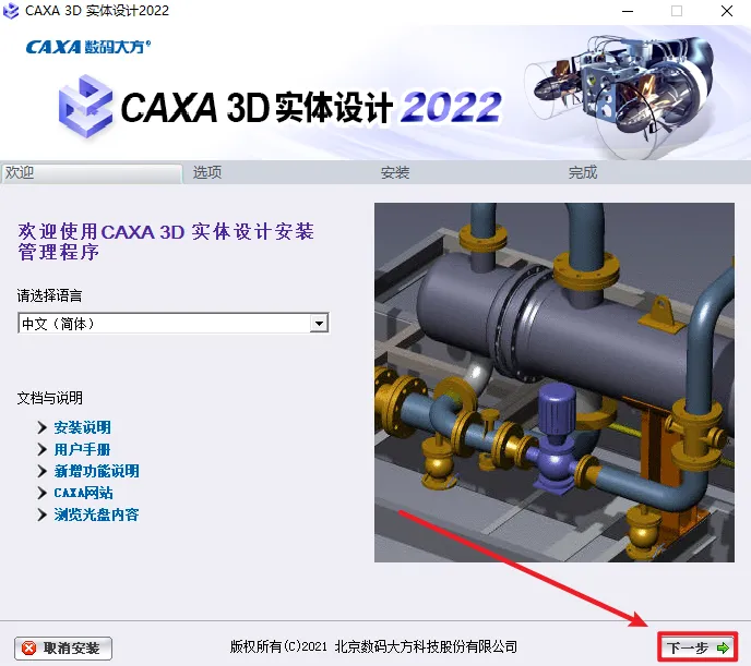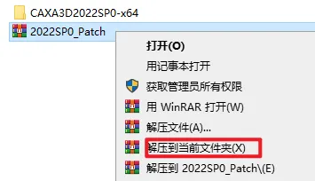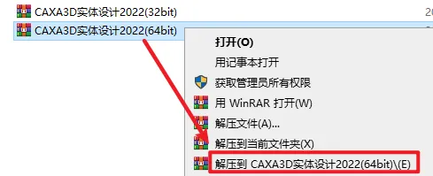 1.选中下载的安装包,右键选择"解压到 CAXA3D实体设计2022(64bit)"