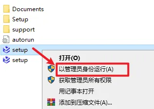 2.打解压好的文件夹,双击打开“CAXA3D2022SP0-x64”文件夹,找到并选中“setup”,右键选择“以管理员身份运行”