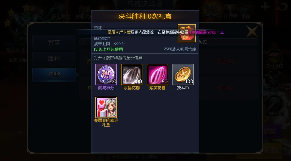 3,团本次数门票【赛利亚的幸运礼盒获得】