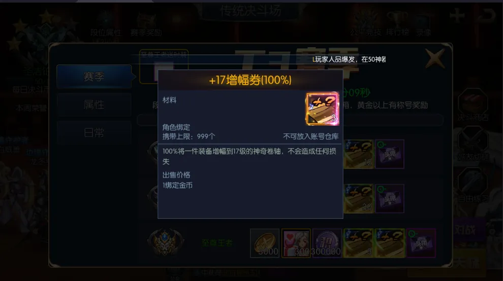 1,PK到达【王者段位】送+17*3张 +18*1张