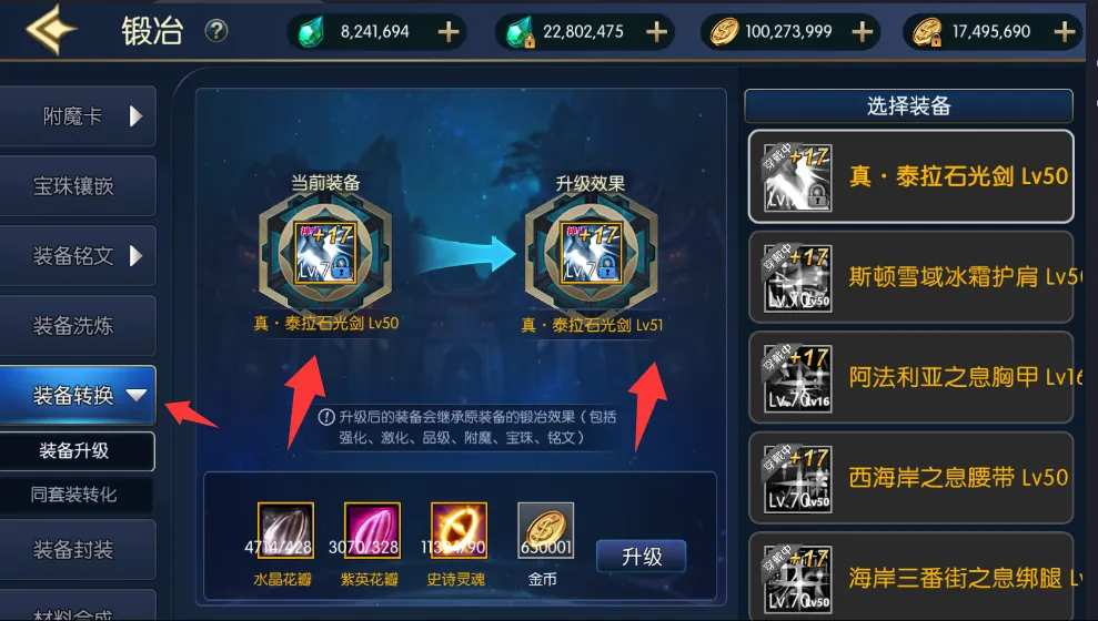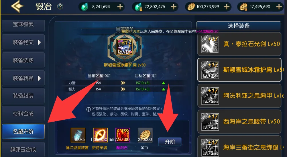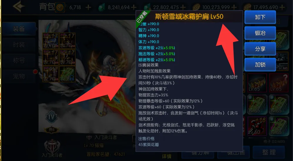 1,是按【装备等级】选择相同等级的才【装备生效】