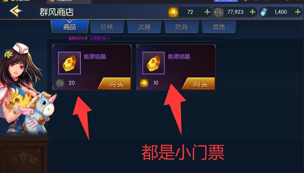 2,然后在商城买【无色】【无色是打团换门票材料的】