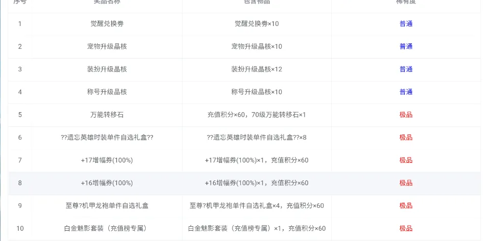 2,【寻宝地图】出所有极品,一般都是出【附魔卡】【宝珠】