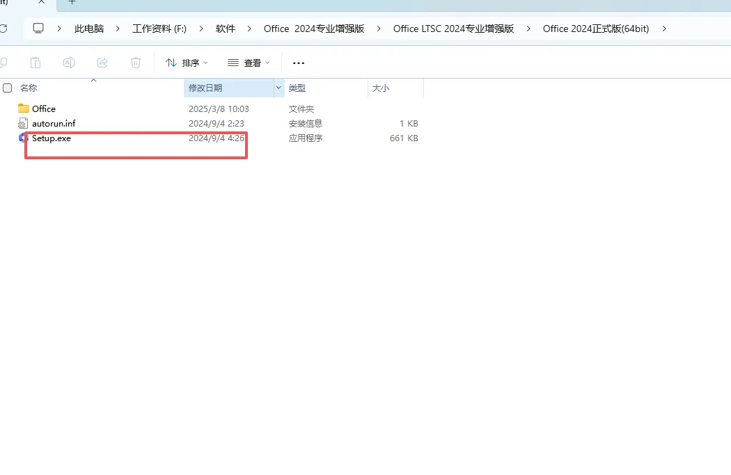 2、打开Office 2024文件夹,以管理员身份运行Setup.exe;
