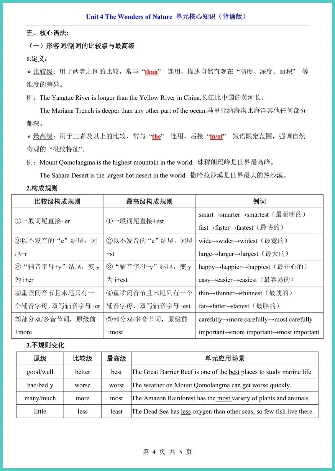 26年春人教版八年级下册英语Unit 4核心知识,5页精华电子版,手机一点就能打印!这份小册子把重点单词、短语、句型、语法考点全打包,配思维导图易错警示真题例句,孩子10分钟背完就能默写,15分钟做完随堂小测,写作翻译不再卡壳。期中考前翻一遍,稳拿基础分!想让孩子单词不丢分、作文有亮点,家长现在就打印,今晚睡前练一练,明早听写全对不是梦!