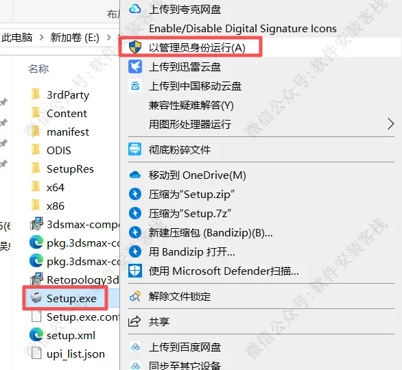 4、选中setup鼠标右键,点击管理员身份运行