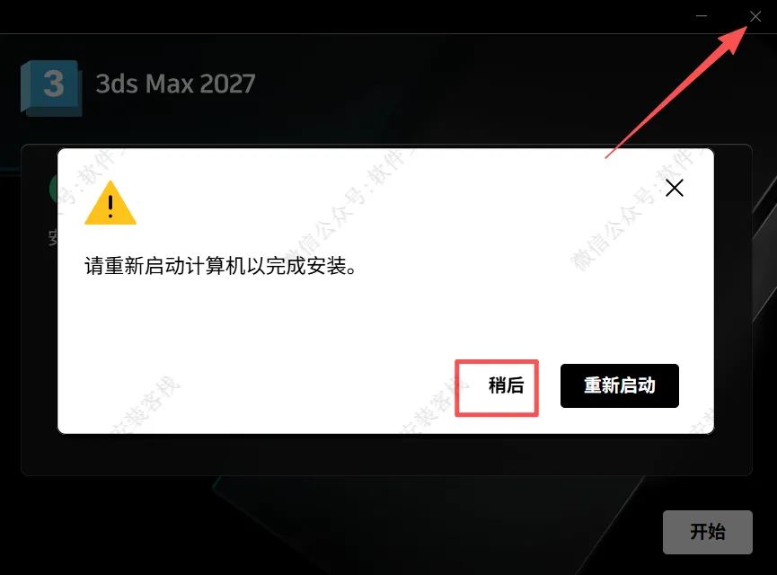 9、如果提示重启,就点“稍后”,再关闭软件