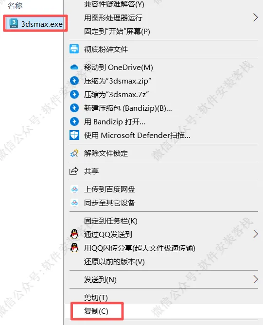 11、鼠标右击【3dsmax】选择【复制】。