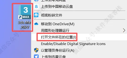12、鼠标右击桌面【3ds Max2027】图标选择【打开文件所在的位置】。