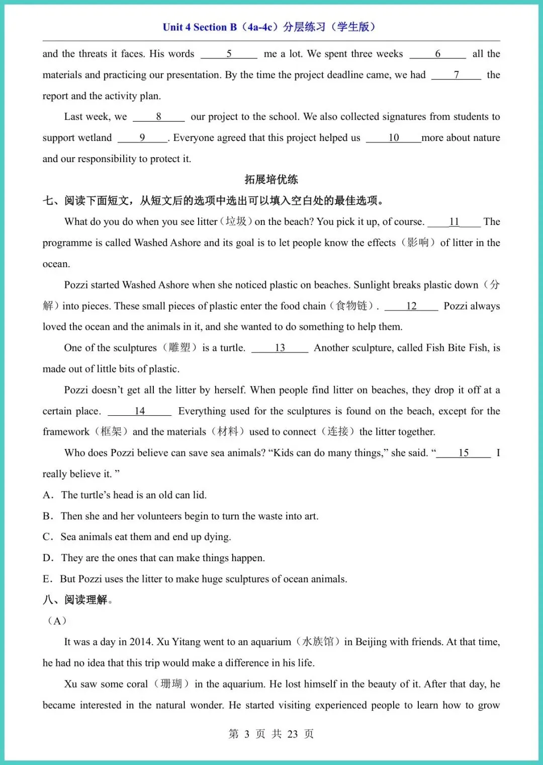 【免费下载】八年级(下)英语Unit4_Section_B(4a-4c)分层练习(人教版) | PDF完整高清电子版可打印