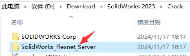 8、选中【SolidWorks_Flexnet_Server】文件,右键复制