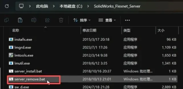 10、打开【SolidWorks_Flexnet_Server】文件夹,双击【server_remove.bat】运行
