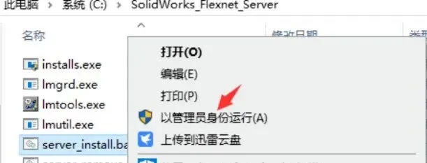 11、再选中【server_install.bat】,右键【以管理员身份运行】