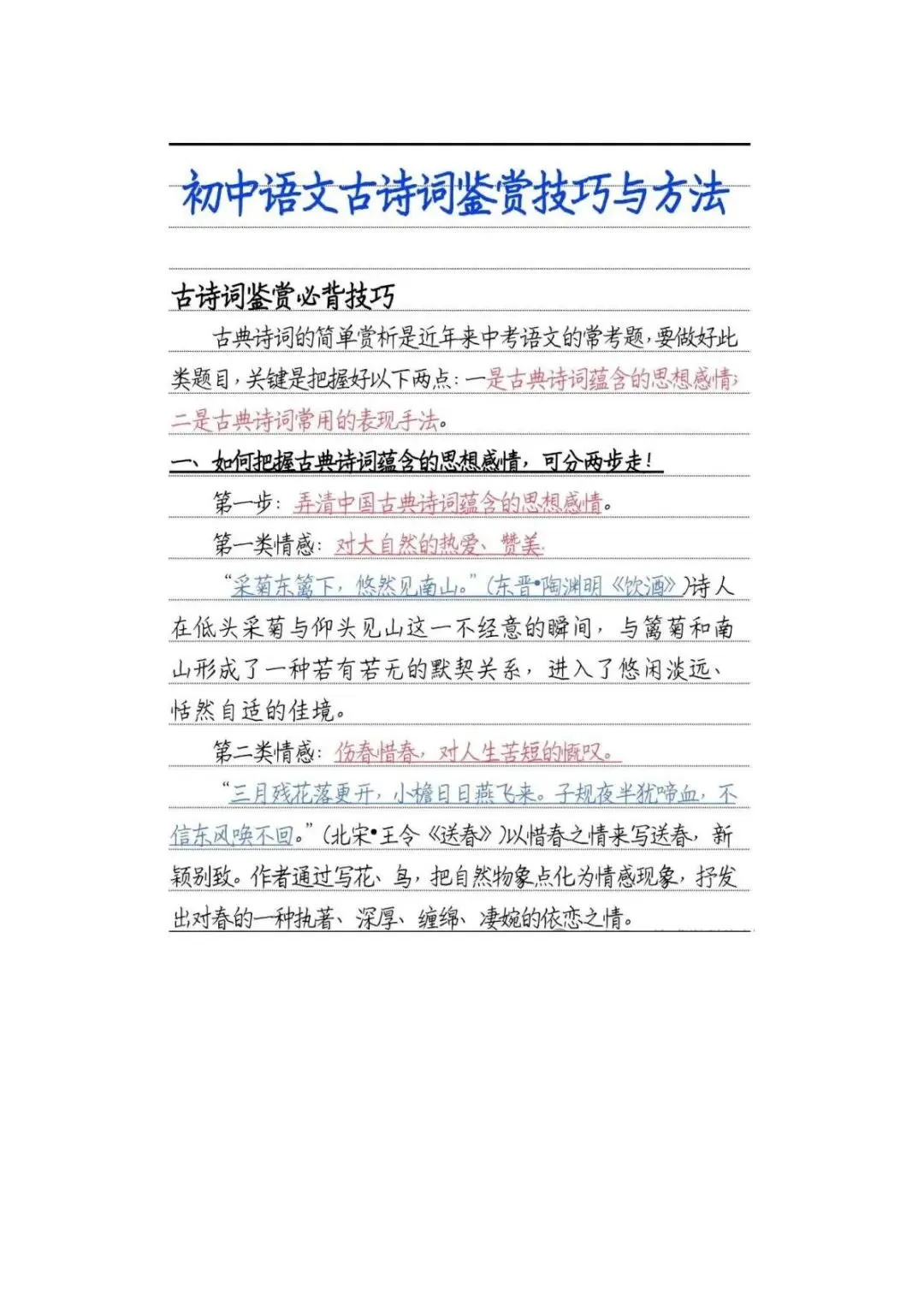 初中语文古诗词鉴赏技巧和方法