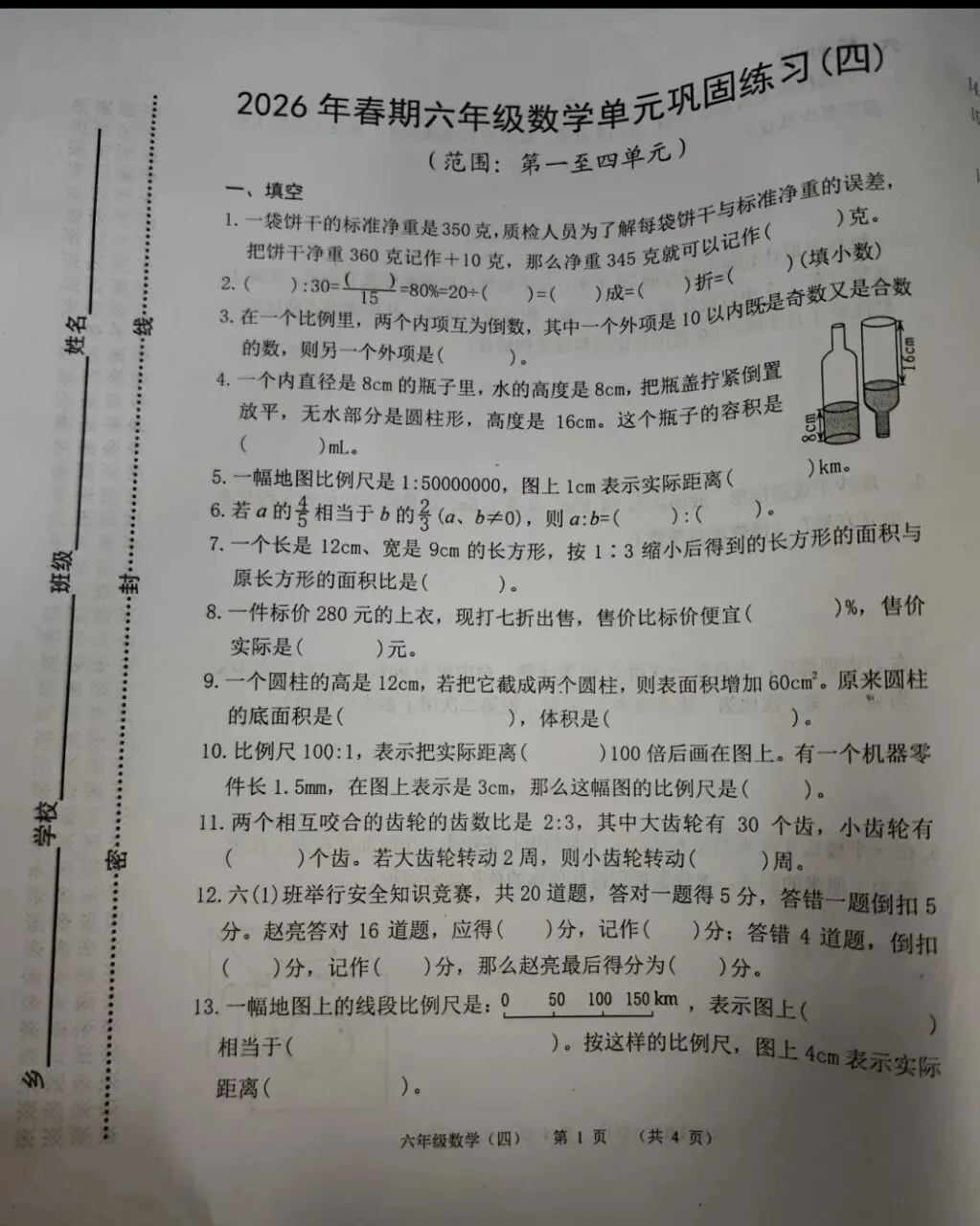六下数学期中考试卷新鲜出炉免费下载