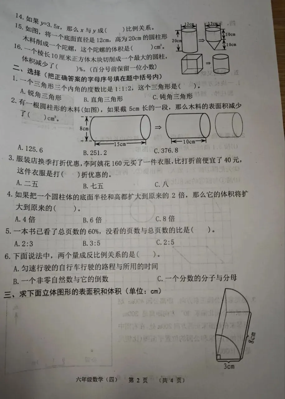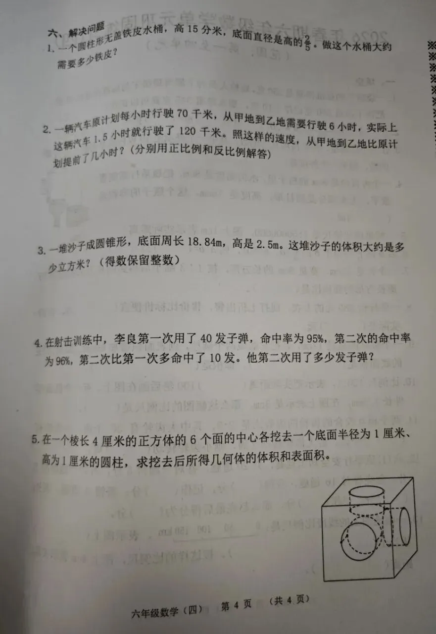 >六下数学期中考试卷新鲜出炉免费下载