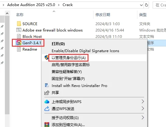 11. 右键以管理员身份运行注册机“GenP-3.4.14.1.exe”。