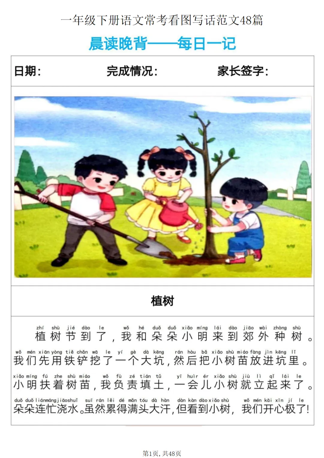 一年级(下)语文 常考看图写话范文48篇