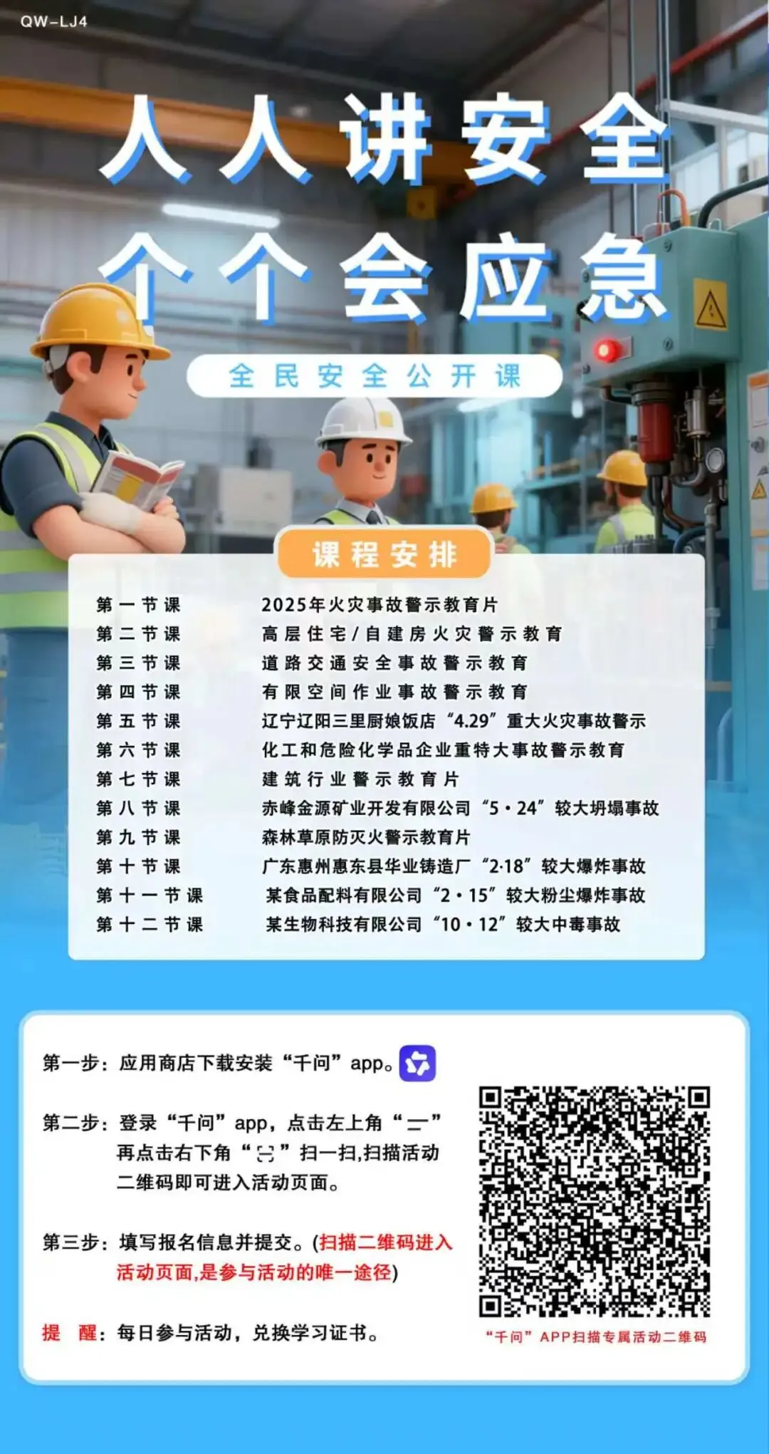 “人人讲安全 个个会应急”全民安全公开课宣传海报图