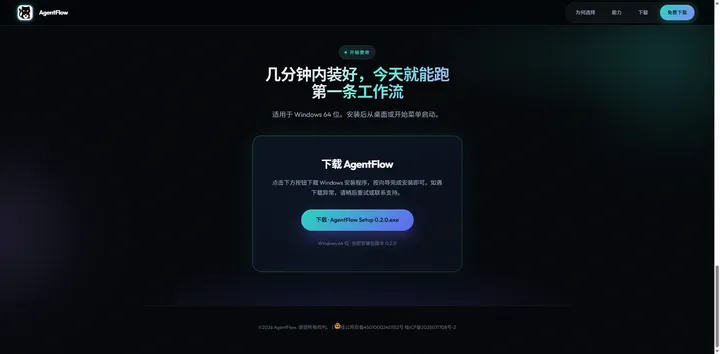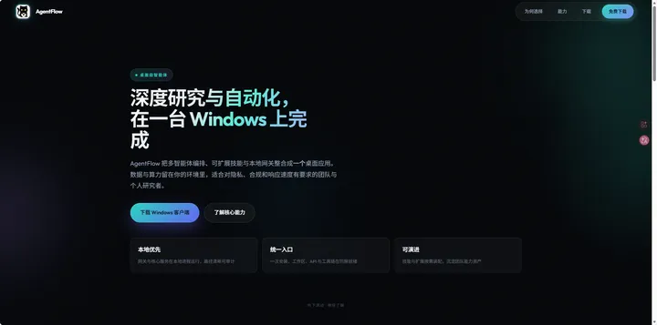 1. 访问官方网站:AgentFlow — 本地智能体工作台