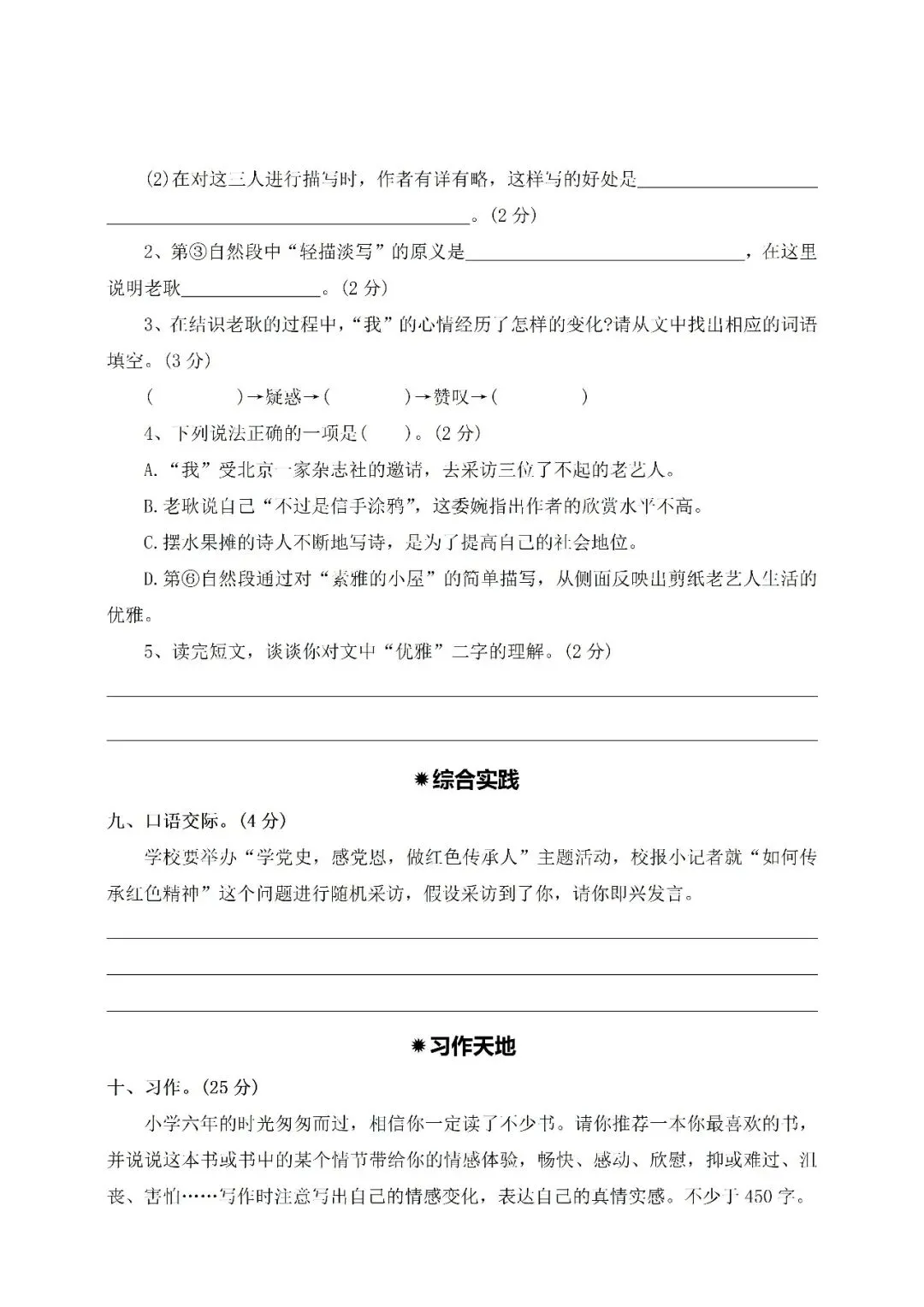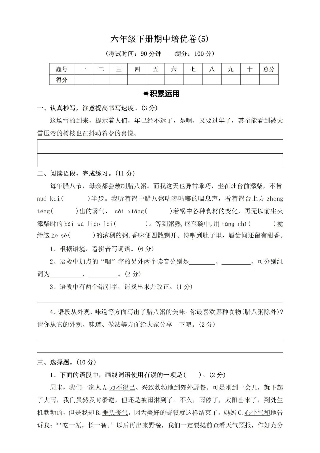 >六年级下册期中培优卷⑤附答案(免费下载)