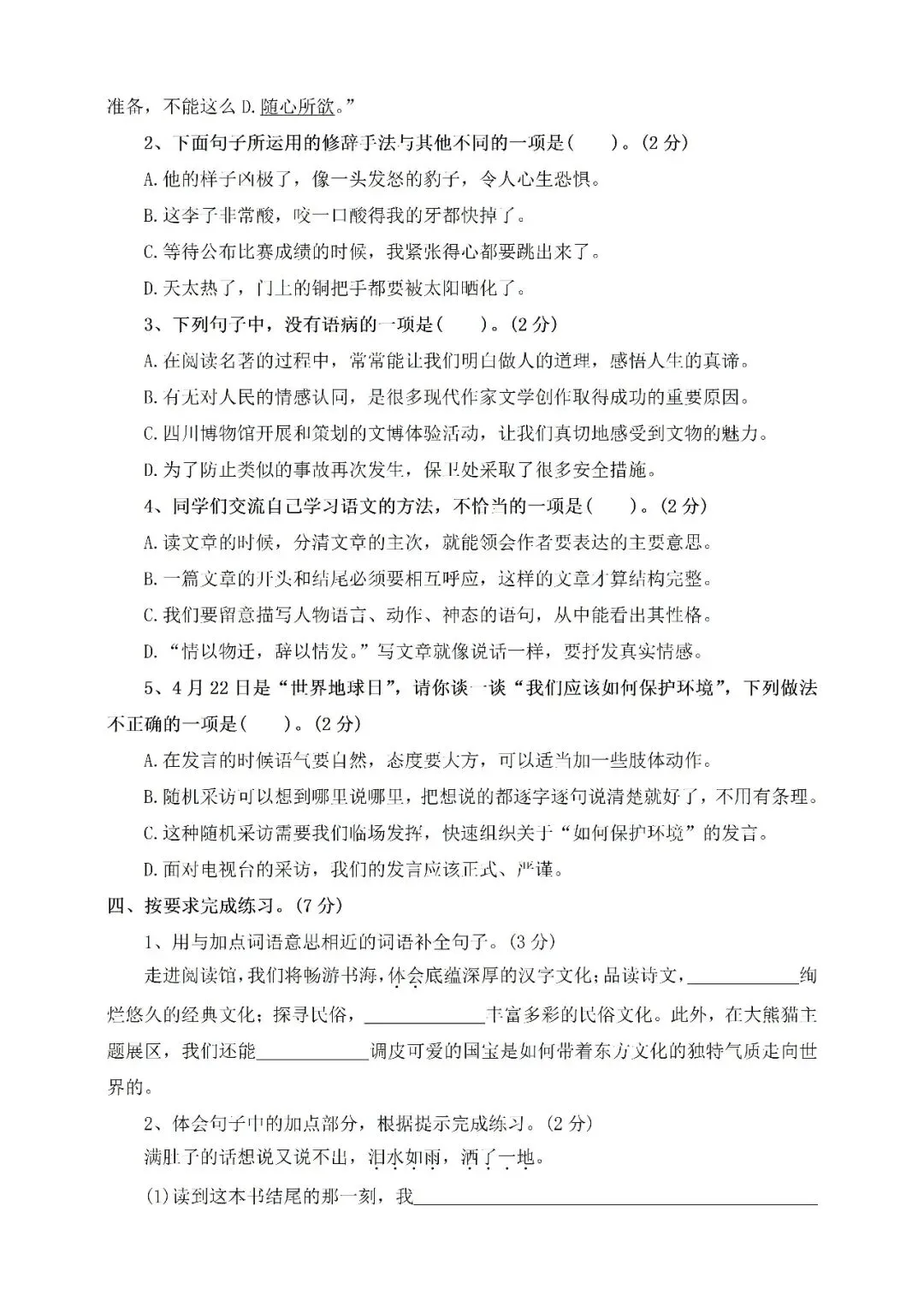 六年级下册期中培优卷⑤附答案(免费下载)