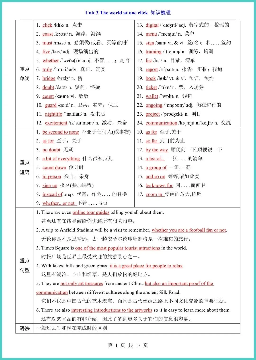 24春译林版八年级下册英语Unit 3知识梳理,15页精华电子版新鲜出炉!这份小册子把重点词汇、短语、句型、语法一网打尽,配思维导图易错警示真题例句,孩子背得又快又准;课后分层小练答案自查,及时巩固,阅读写作双提升。期末冲刺、日常预习都好用,英语成绩想不进步都难!需要的家长赶紧打印,让孩子每天十分钟,轻松吃透Unit 3!