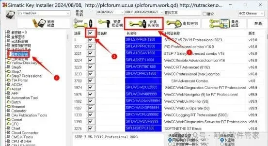 51.①点击【需要的密钥】;②勾选【选择】右边的【方框】;③点击【安装长密钥】