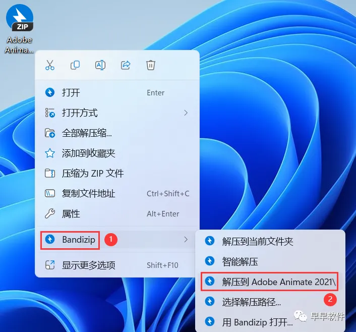 1、下载Adobe Animate 2021软件安装包到电脑上,右键选择【解压到Adobe Animate 2021\】