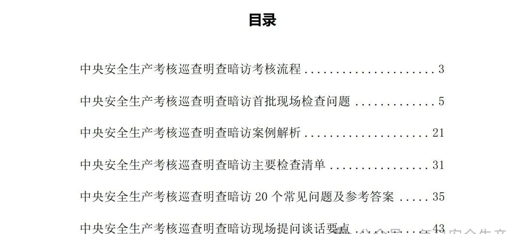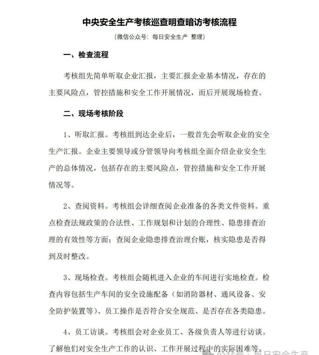 为确保各单位顺利应对安全生产明查暗访考核工作,每日安全生产根据经验整理了一套关于应对明查暗访组考核的应知应会手册,供各单位参考并做好迎检准备。