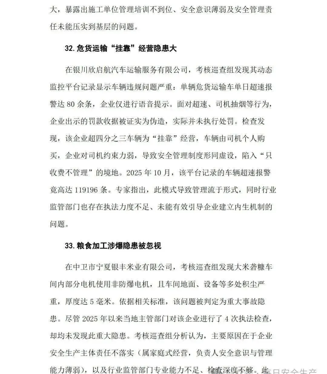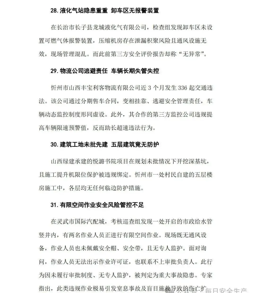 2026年度中央安全生产考核巡查季度明查暗访工作重点及注意事项1.责任落实核查:查党政领导干部、部门监管、企业主体责任落实,倒查典型事故涉险问题履职情况,督促树立正确政绩观。2.治本攻坚推进:聚焦安全生产治本攻坚三年行动收官,核查 “八大行动”、消防生命通道等重点任务完成质量。3.全链条整治成效:检查 “一件事” 全链条安全整治,落实 “三管三必须”,解决新风险新问题。4.重点行业隐患排查:覆盖矿山、危化品、建筑施工、消防、交通运输、工贸等,严查重大隐患、动火 / 高处 / 有限空间等高危作业违规。5.复工复产安全:紧盯高危行业复工方案、风险辨识、设备检查、员工培训,杜绝抢工期、超负荷生产。免费安全资料关注公众号:安全生产管理。6.应急管理实效:查预案实用性、演练频次、物资储备,严处迟报漏报瞒报事故。严格 “四不两直”,直奔基层、直插现场,不搞形式主义,查真实隐患。发现问题依法查处、追责问责、公开曝光,重大隐患挂牌督办,闭环整改。坚持严、实、深、细,精准核查,不重复检查、多头执法,减轻基层负担。严守廉洁纪律,不接受宴请接待,客观公正记录问题,确保巡查公信力。结合清明等时段,强化景区、燃气、消防、交通运输等领域风险排查。1. 国家安全生产考核巡查(燃气领域)最新要点、评分细则、“一省一单”整改要求;2. 《城镇燃气管理条例》《城镇燃气经营安全重大隐患判定标准》核心条款与执法认定;3. 治本攻坚三年行动、管道老化更新改造、用户端安全整治最新政策口径;1. 考核巡查高频问题:责任体系、制度台账、现场管理、应急处置、人员资质等典型缺陷;2. 老旧管网、占压圈占、密闭空间、第三方施工、餐饮/城中村/出租屋等难点治理;3. 入户安检“到访不遇、用户拒检”合规处置流程与证据留存;4. 瓶装气全链条管控:实名登记、统一配送、钢瓶溯源、报废处置;(1)资质合规:核查燃气经营许可证、充装许可证等是否有效,经营范围与许可是否一致 ;(2)人员资质:主要负责人、安全管理人员、抢修人员等是否经专业培训并考核合格,数量是否匹配企业规模 ;(3)制度体系:全员安全生产责任制、风险分级管控、隐患排查治理、应急管理等制度是否健全并落实 ;(1)厂站布局:生产区与辅助区是否隔离,实体围墙、防火间距等是否符合规范;(2)安全装置:储罐需有压力/液位监测及超限报警;厂站内设备管道需设紧急切断、放散装置;装卸系统需设防拉脱联锁保护;爆炸危险环境的电气仪表需防爆;(3)设备维护:压力容器、压力管道、气瓶等是否按规定检验,严禁使用超期、不合格设备;(4)防爆与通风:瓶库、控制室等区域的电气线路、管材是否防爆;可燃气体浓度可能达爆炸下限20%的区域,是否设置可燃气体报警器;(3)以阴极保护为例,探讨无法实现的规范中相关强制条款的处理方式;(4)调压设施的设置通病问题,国家、省市安全检查的必查项目梳理总结;(5)关于防雷接地问题,即将纳入隐患判定标准的交流;(1)LPG客户端的安全隐患辨识,即:瓶、管、灶、阀和用气环境等常见的隐患;(2)天然气居民用户端、非居用户端的安全隐患的排查常见的问题;(3)客户端的可燃气体报警器和防爆电气的相关问题探讨;1. 近年燃气安全事故与考核巡查典型问题案例复盘;1.省、市、县(区)人民政府、燃气主管部门、应急管理、市场监管、消防等相关人员;2.燃气企业主要负责人、分管安全负责人、安全管理部门负责人;3.场站、管网、运维、抢修、用户安检、台账管理等骨干人员;4.瓶装液化气企业、配送站点、餐饮用气单位安全负责人;杨森(应急部安全专家、国考组多年知名专家、重大隐患判 定标准特邀专家、城镇燃气多部标准起草人、多省市安全专家)谢磊(国考组多年知名专家、特种设备协会应急专家、安全生产协会安全专家、多省市专家组成员)王鸿毅(住建部督导组专家、应急部安委会督导组专家、多省市专家组成员、燃气安全技术等培训专家)2026年05月19日-05月22日(19报到)重庆