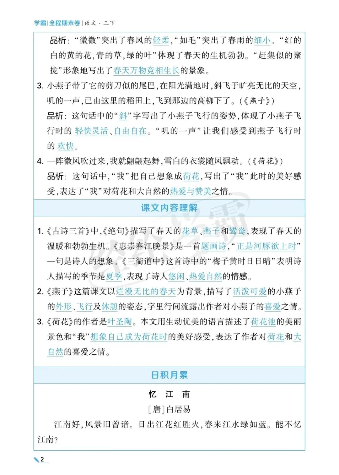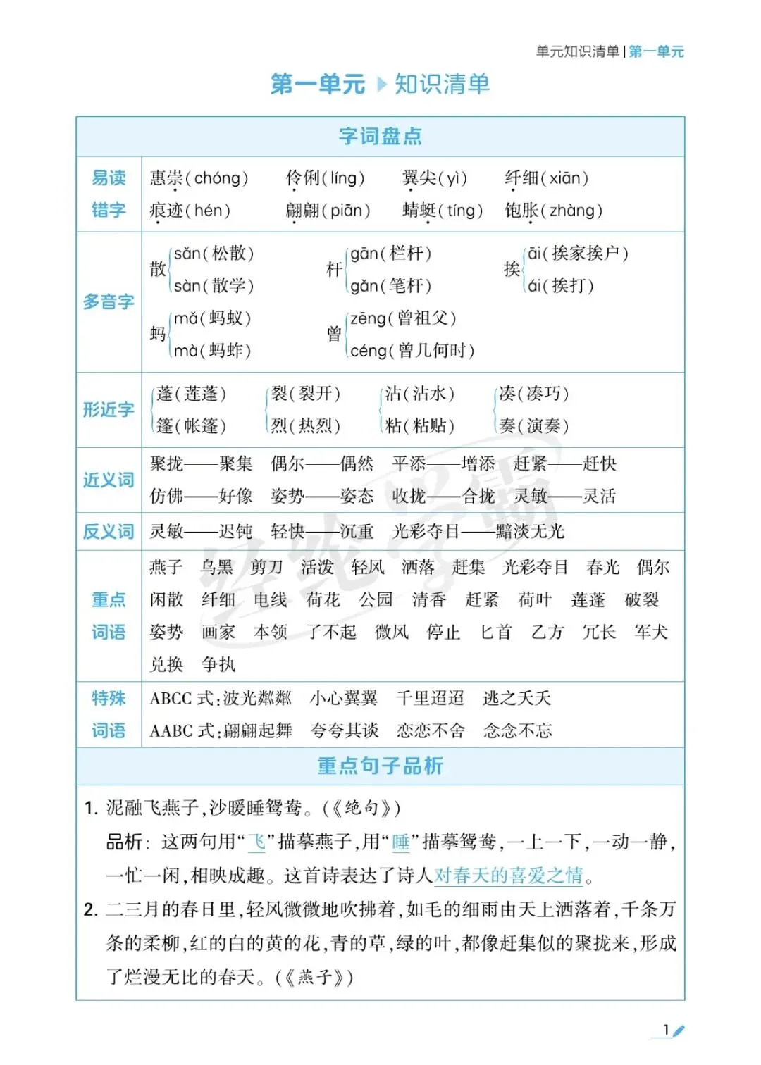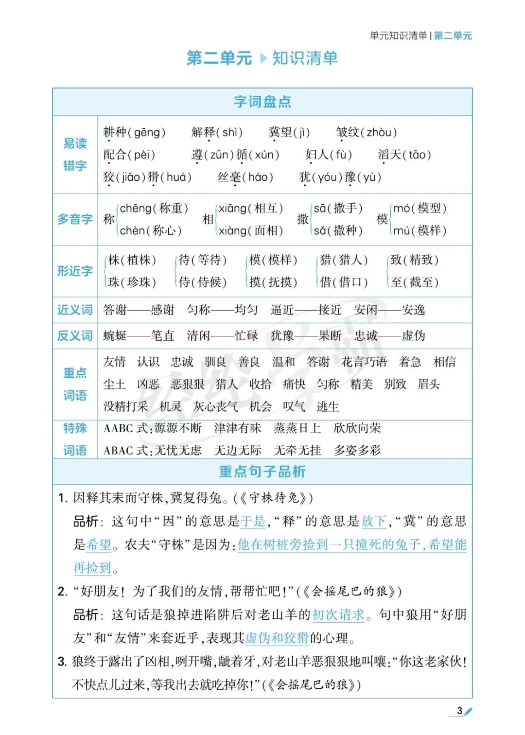 三年级语文单元考点梳理