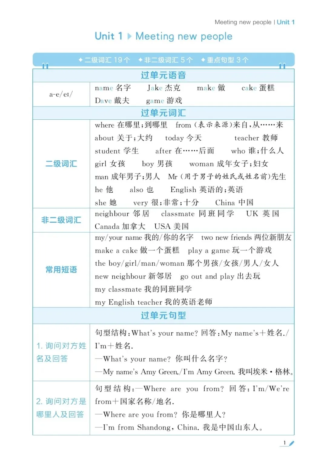 三年级英语单元考点梳理
