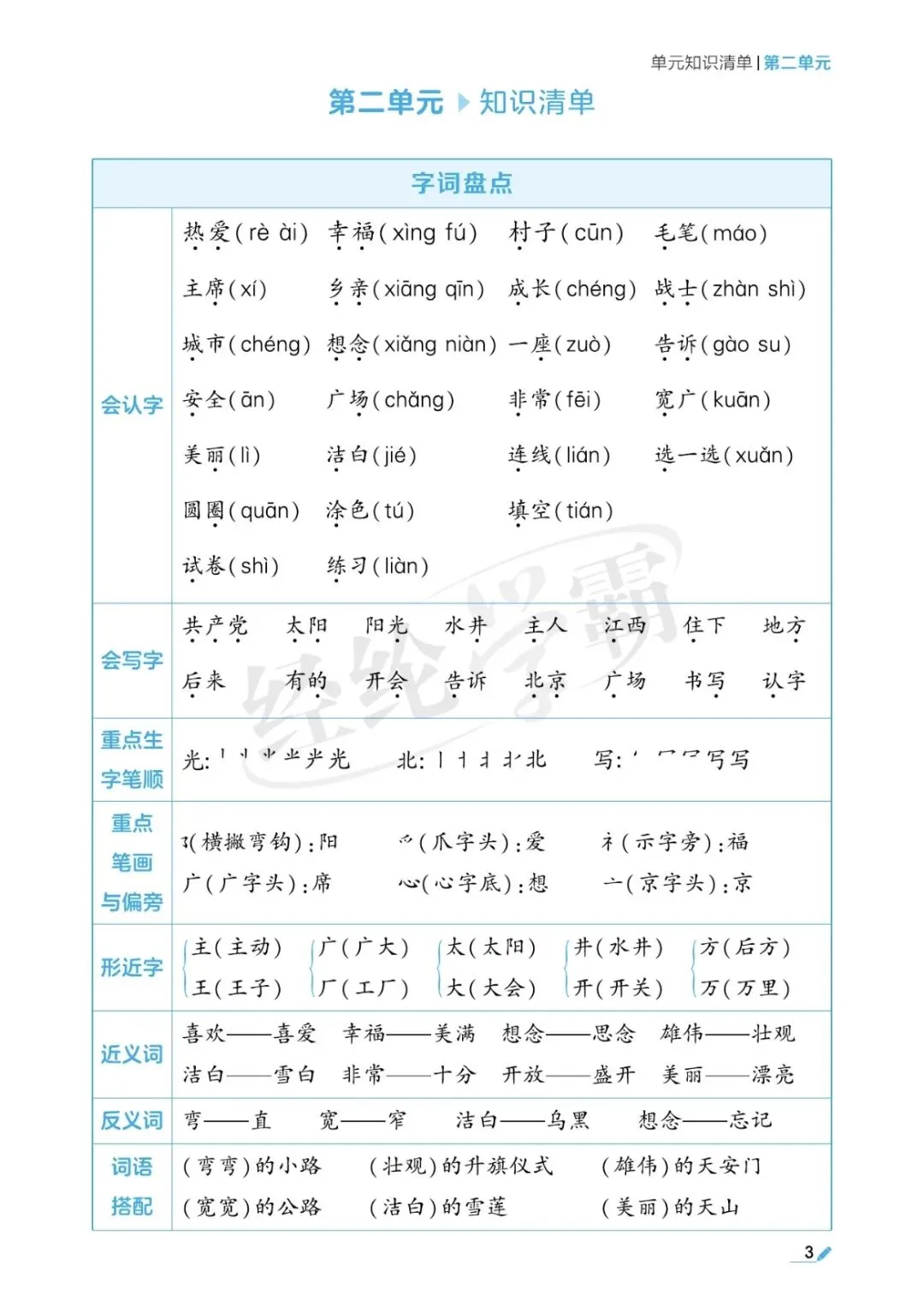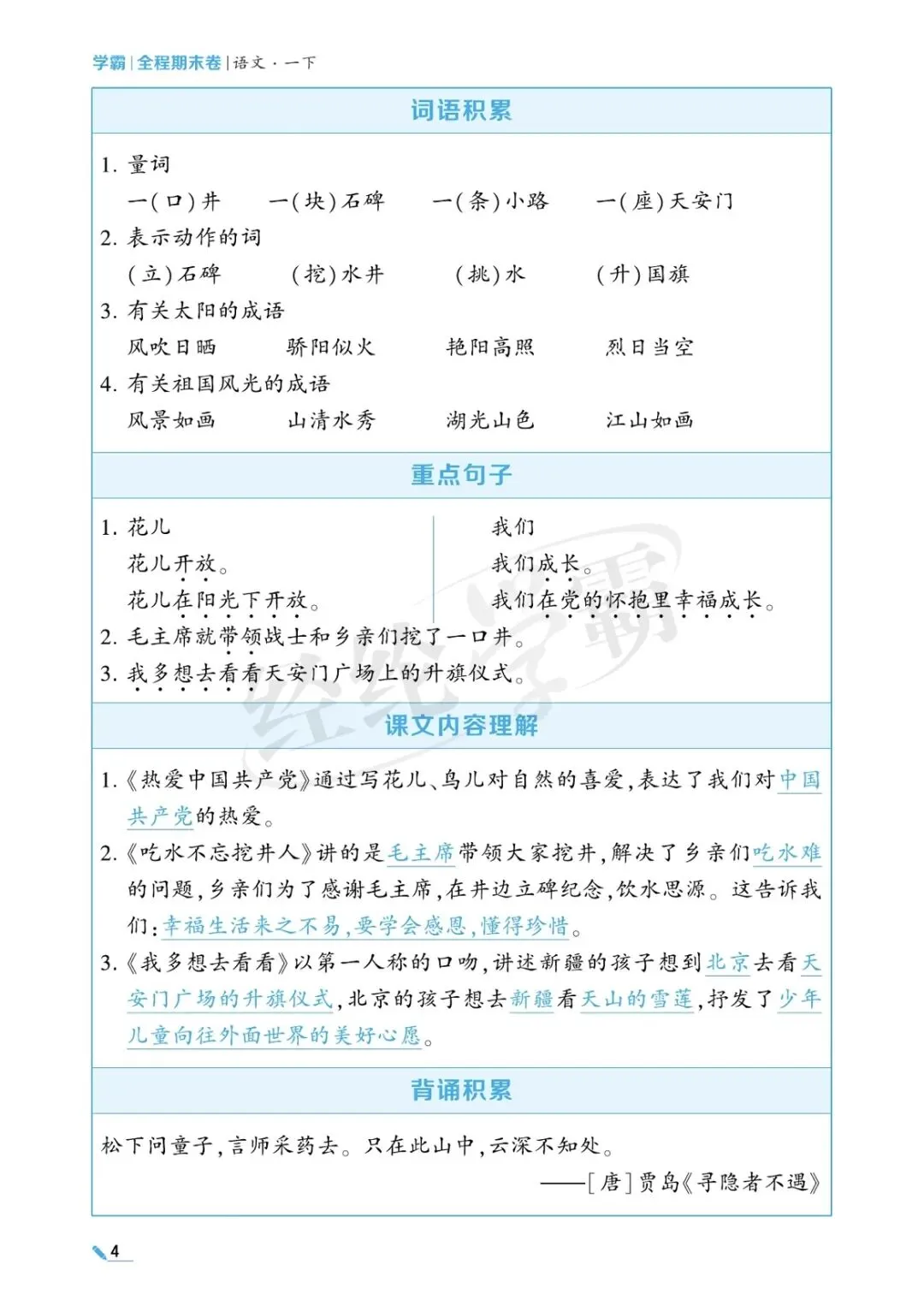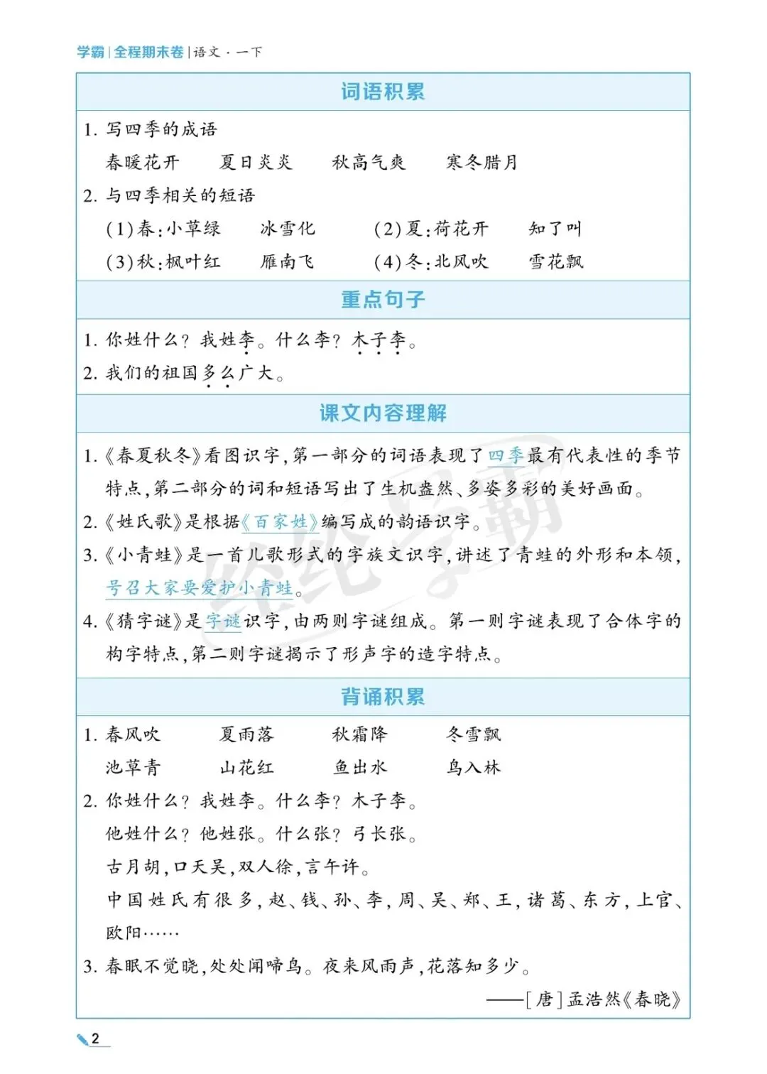 一年级语文单元考点梳理