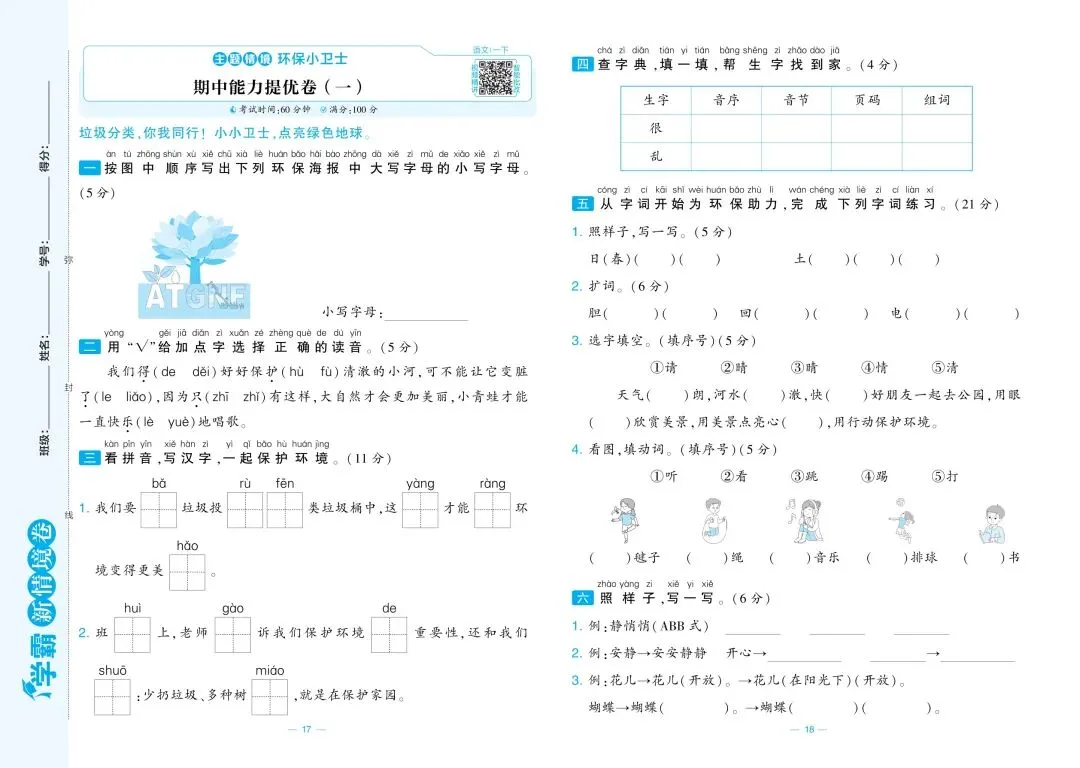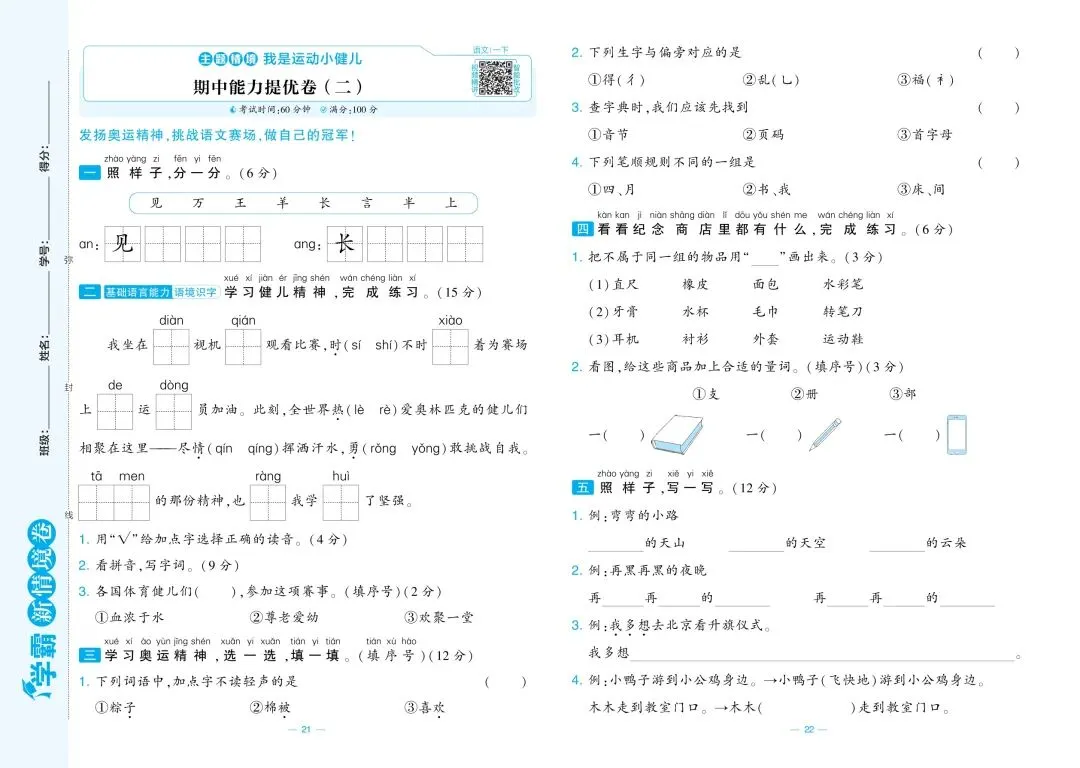 一年级语文期中模拟试卷