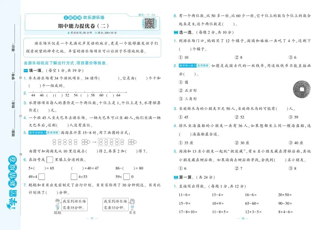 一年级数学期中模拟试卷