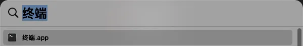 使用快捷键 Command + 空格 打开聚焦搜索,输入“终端”,打开终端.app