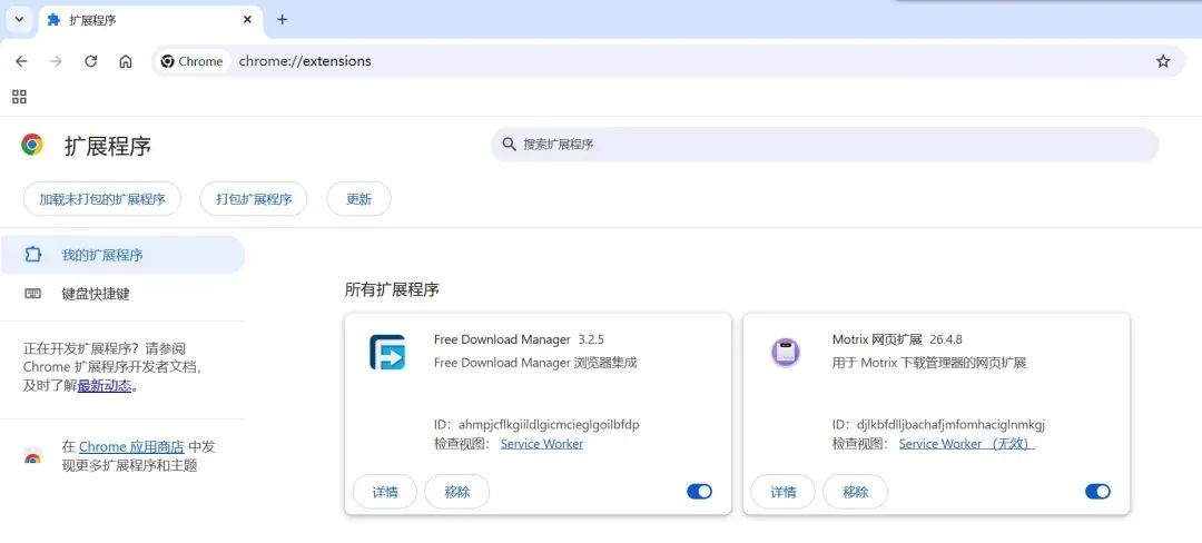 或者直接输入:chrome://extensions 直接跳转到扩展程序的界面
