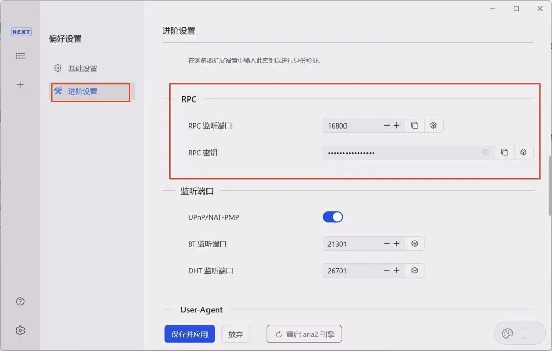然后我们将RPC的配置与Motrix 网页扩展的设置配对好。