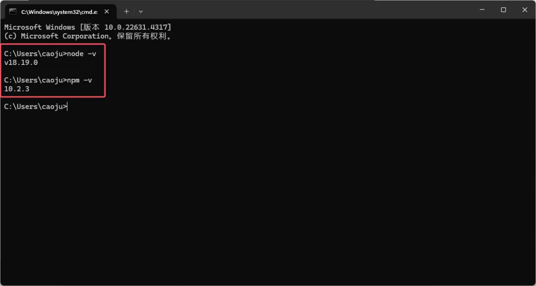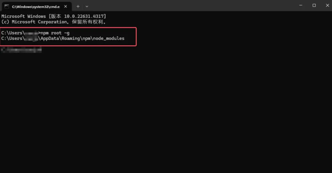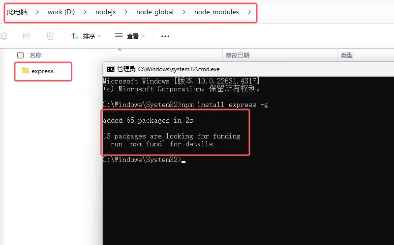 6)测试:全局安装一个最常用的 express 模块进行测试(使用管理员方式打开cmd)