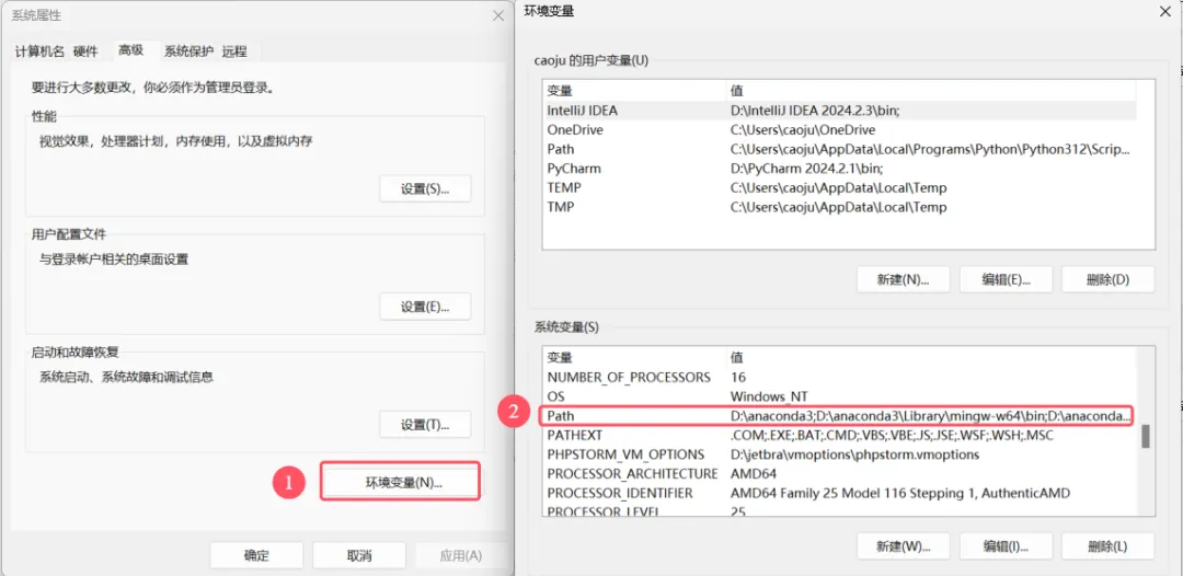 Win + i 键打开设置 > 系统 > 系统信息 > 高级系统设置 > 点击环境变量 > 找到系统变量中的path