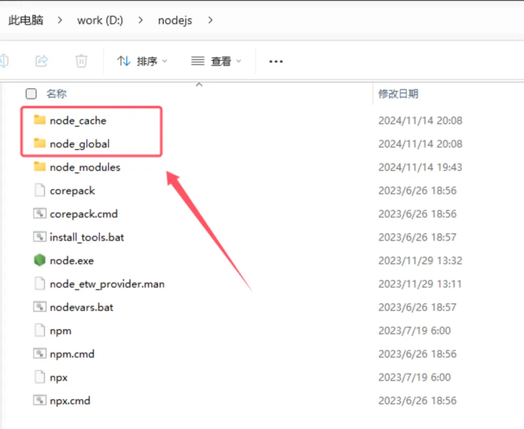 在安装目录下新建两个文件夹【node_global】和【node_cache】