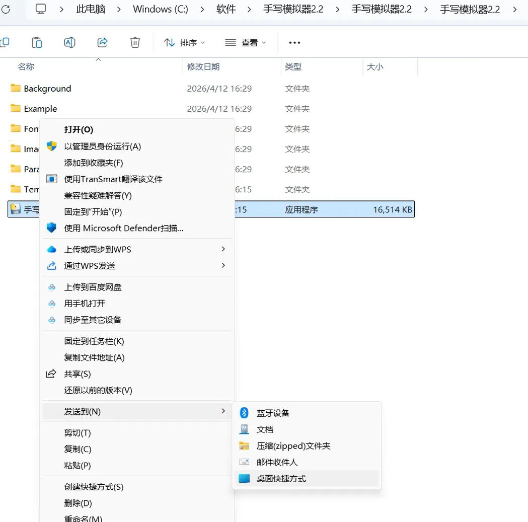 2.6,创建桌面快捷方式,鼠标右击打开后的【手写模拟器2.2】->【发送到】->【桌面快捷方式】。