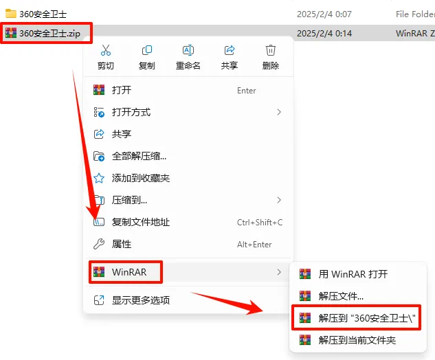 1.选中下载的压缩包,然后鼠标右键选择解压到“360安全卫士”(列表中没有解压选项点这里)