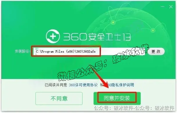 3.选择软件安装路径,建议和教程中的保持一致,本例默认安装(将路径地址中的首字符C改为D表示安装到D盘,安装路径不要出现中文),点击“同意并安装”