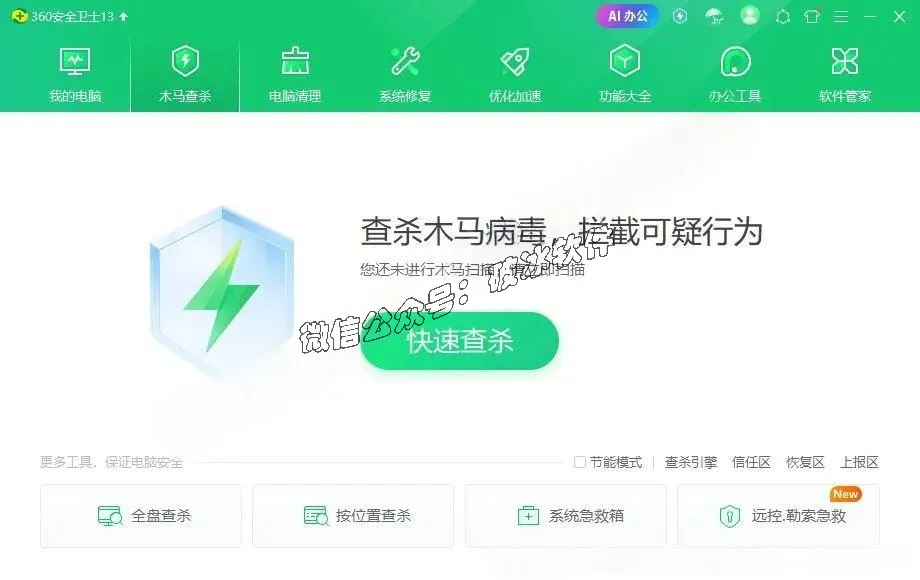 360 安全卫士是奇虎 360 自主研发的一款安全防护类软件,凭借出色的防护效果与实用的功能体验,收获了大量用户的认可。软件涵盖木马查杀、插件清理、漏洞修复、电脑体检、远程救援、隐私保护、专家服务、垃圾清理及使用痕迹清除等多项核心功能,为电脑安全提供全方位保障。