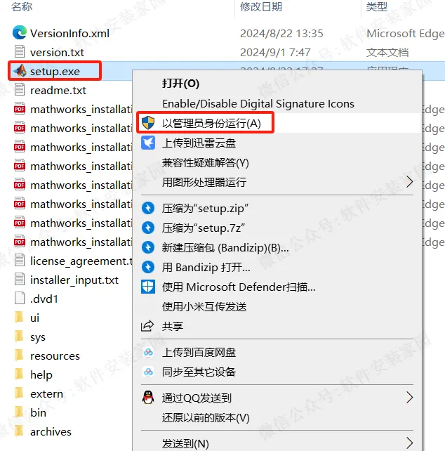 4、打开解压文件,选中setup鼠标右键,管理员身份运行
