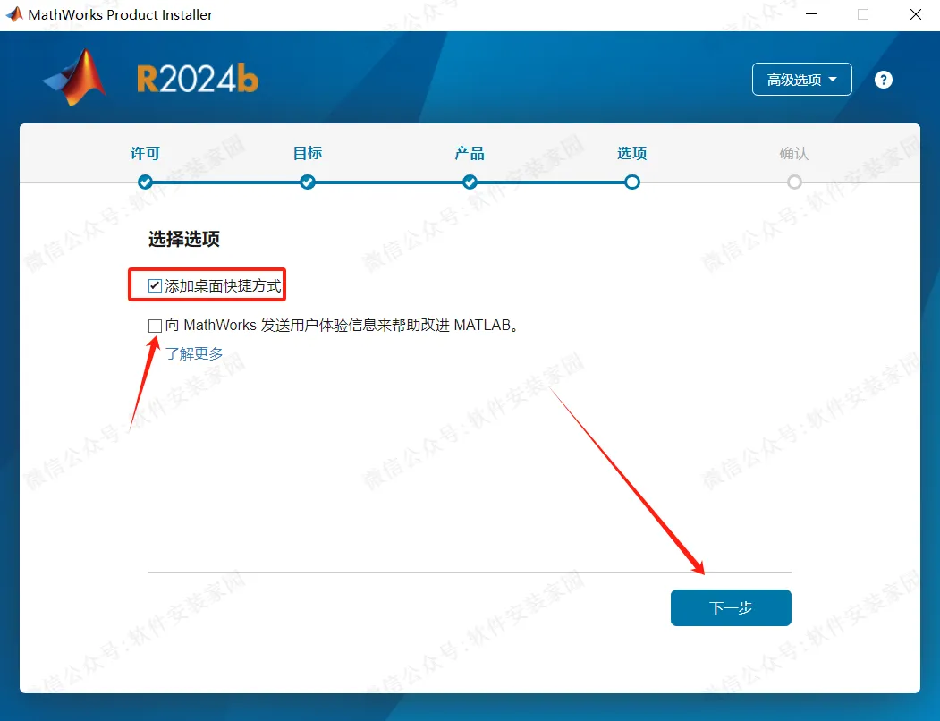 13、取消下面的勾选,勾选添加桌面快捷方式,点击“下一步”