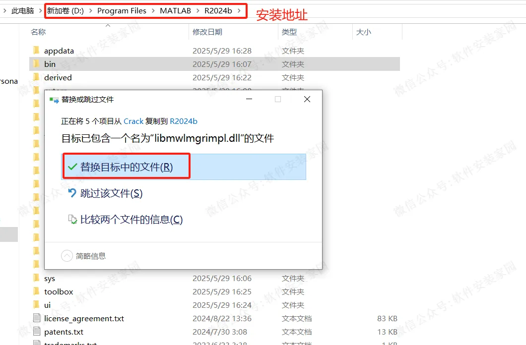 19、将bin文件夹粘贴到软件安装路径下(第11步设置的路径),点击“替换目标中的文件”