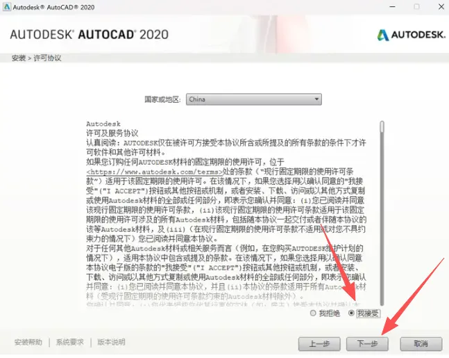 3、勾选我接受,再下一步。